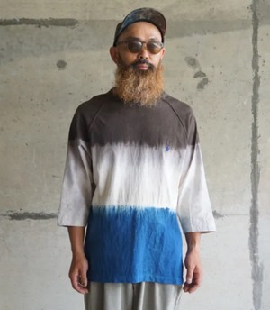 少しゆったりしたラグランタイプの七分袖カットソーを泥染め、