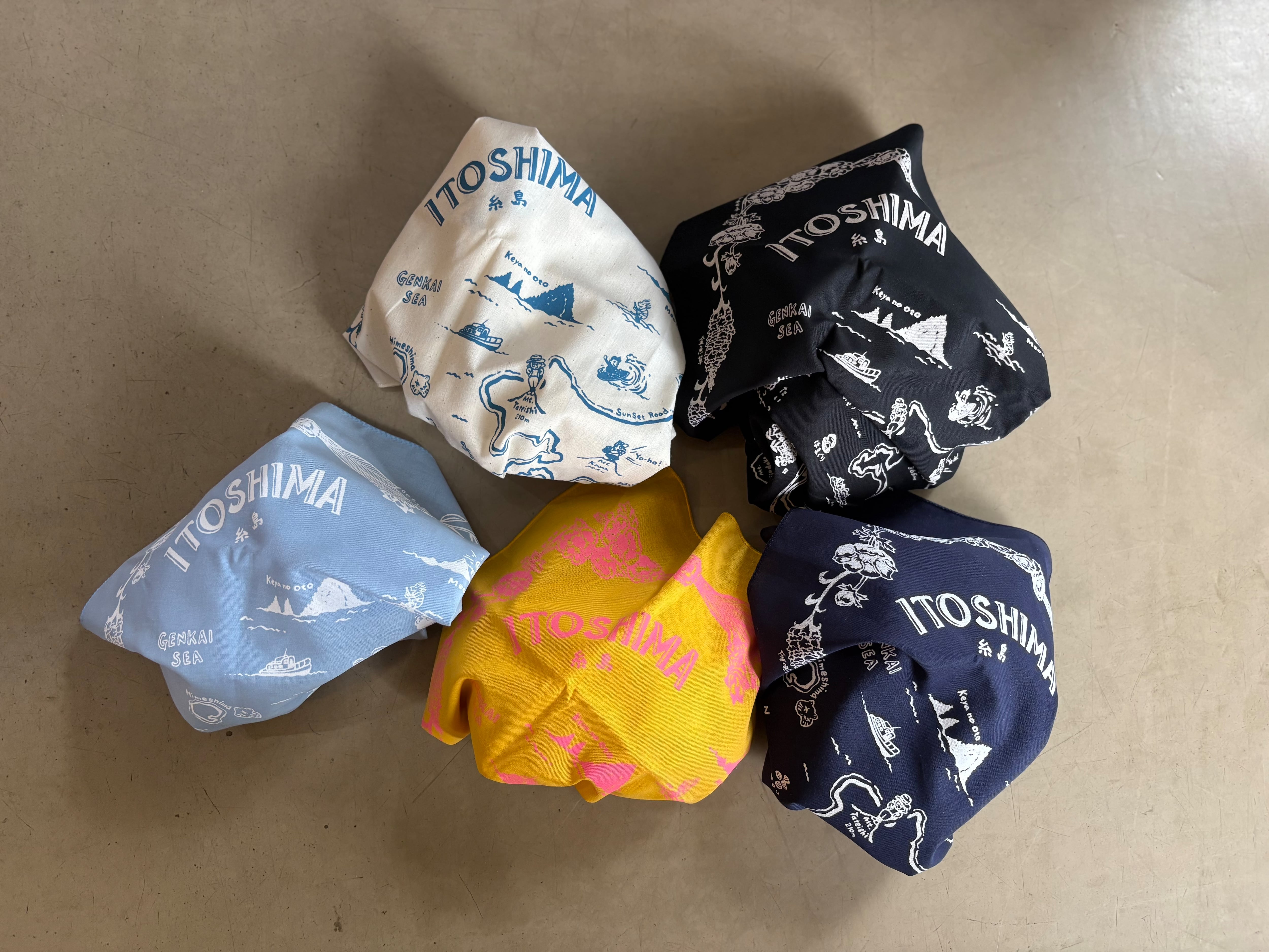 糸島のお店ならではの土地感覚でデザインと生地選び、インクの種類にこだわりました。