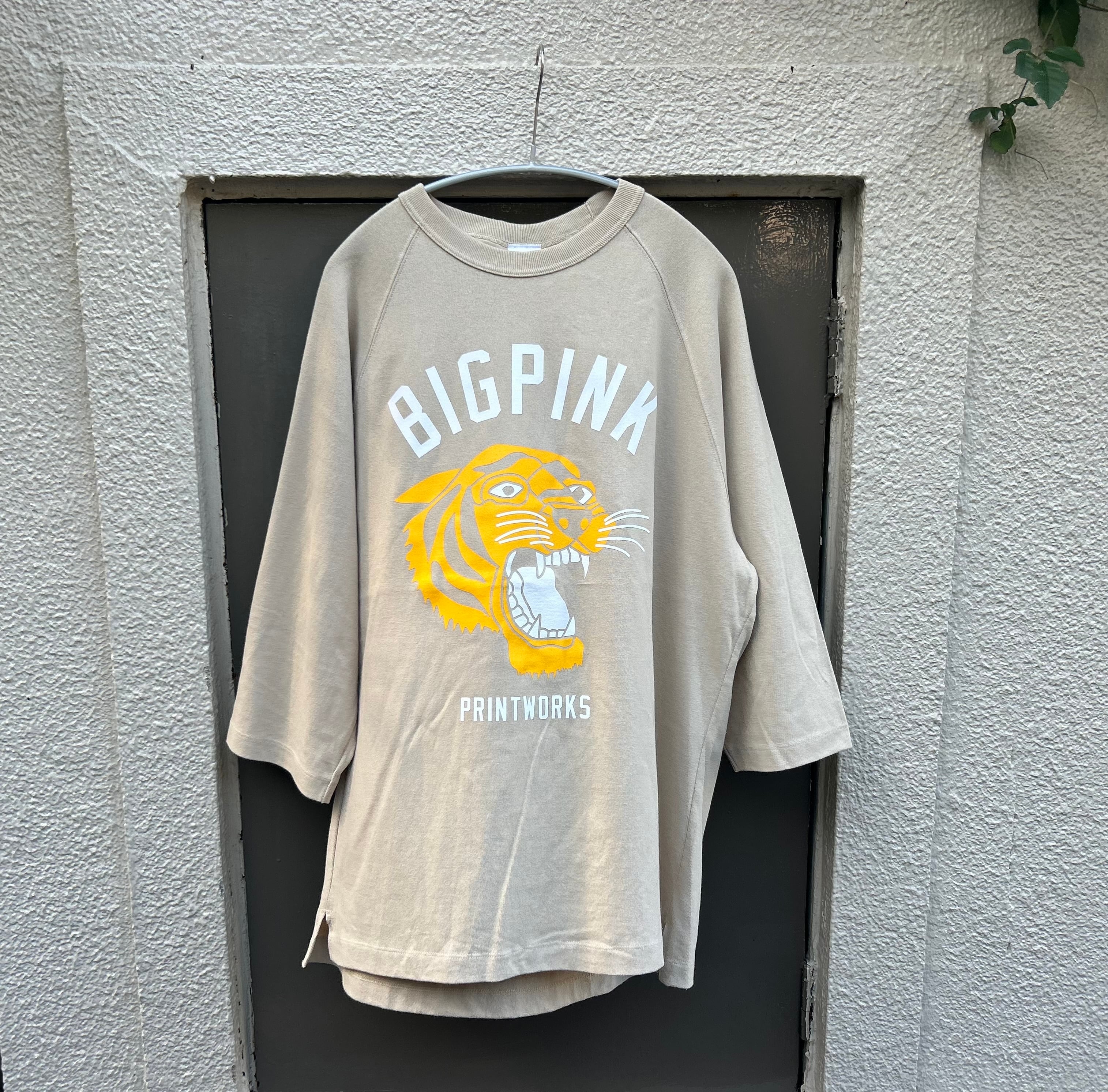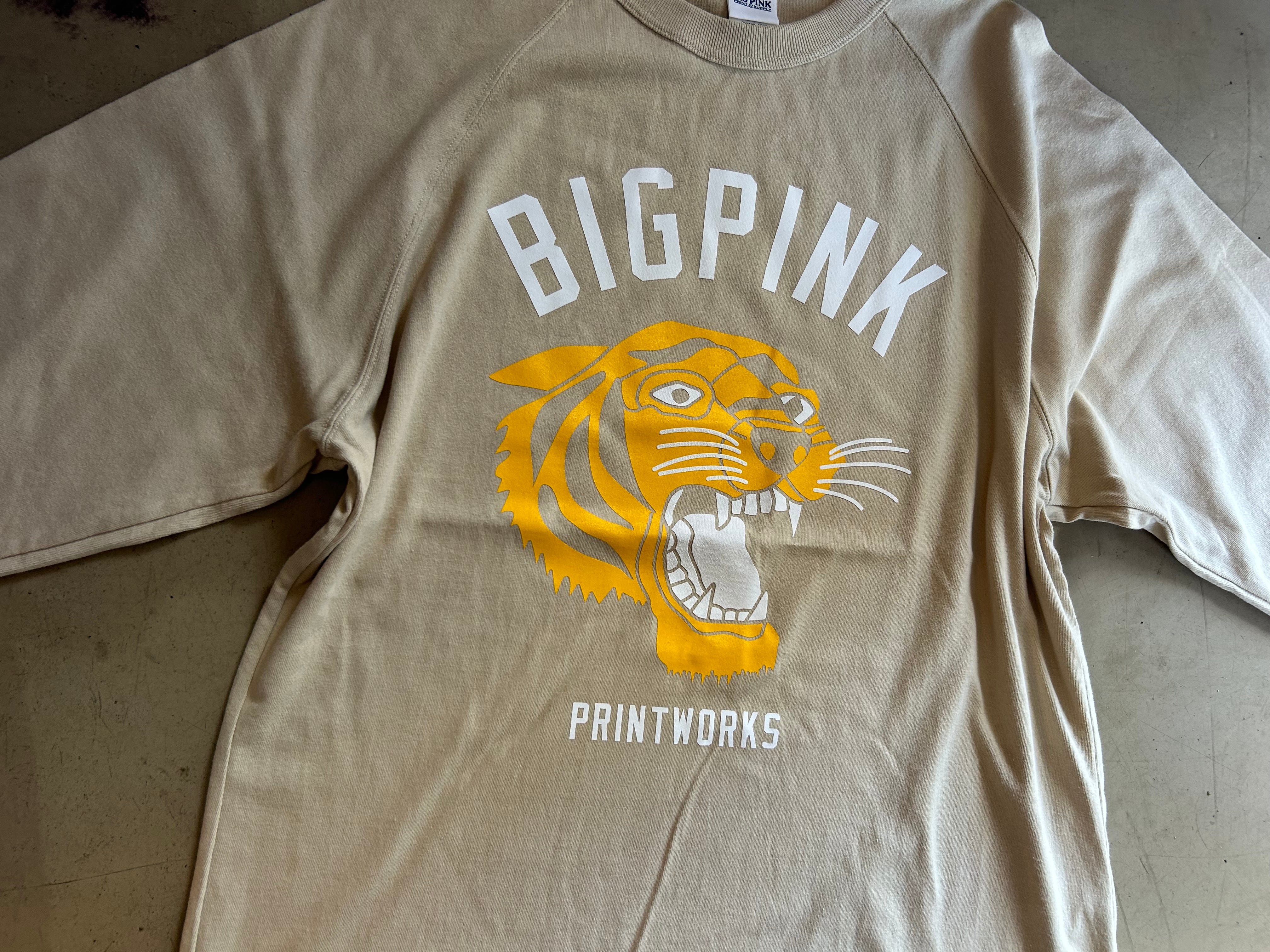 BIG PINKオリジナルタイガーデザイン、肩周りの動かしやすいラグランスリーブにプリントしました。
