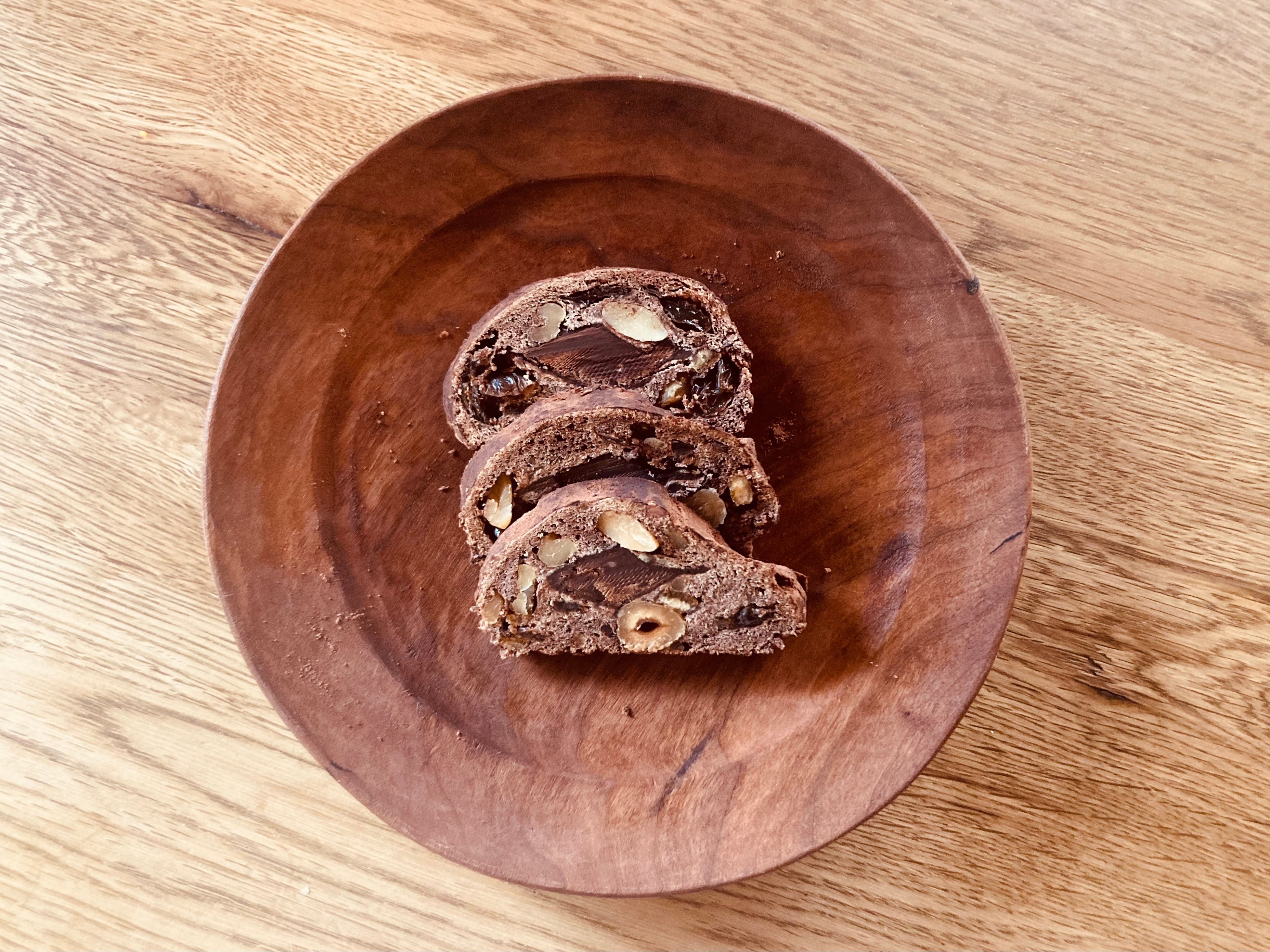 のたりのシュトーレンの製法をベースにビターチョコレートやナッツたっぷりの発酵菓子を作りました。