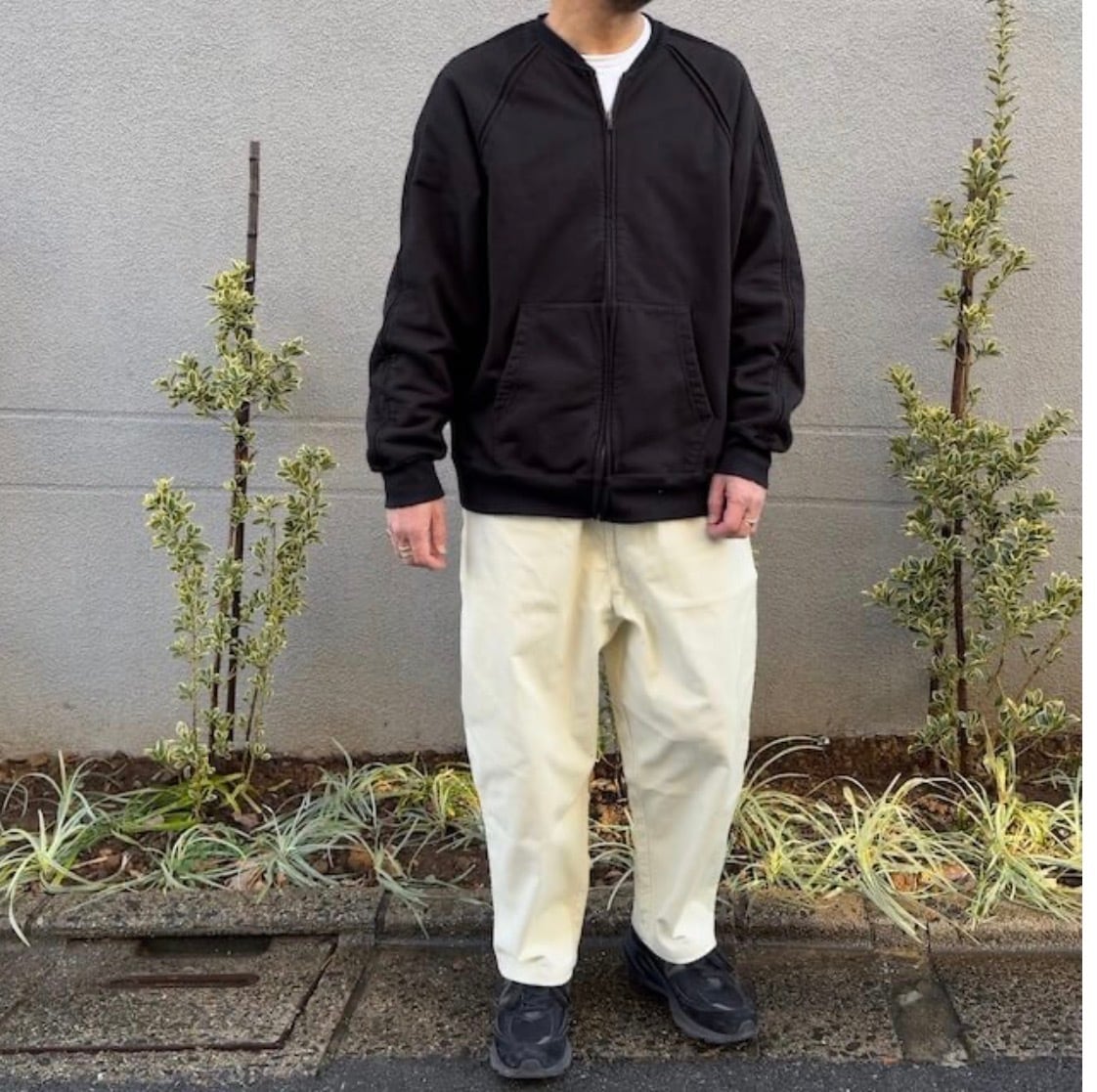 ドクターの休日リラックスウェアをイメージ。 お尻周りはゆったりと、レングス短めのワイドパンツ。